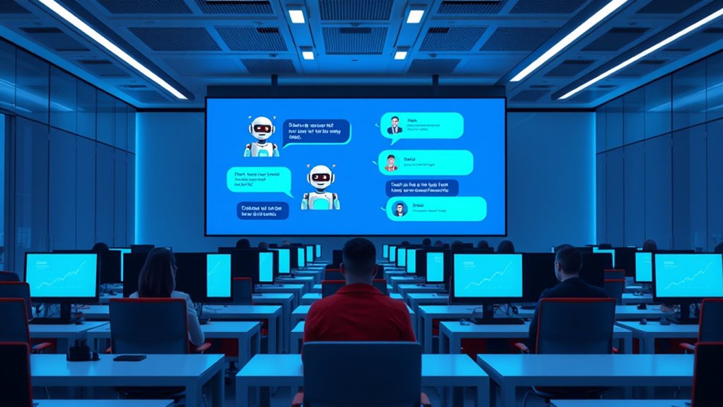 Implementing conversational AI helps you cut customer service costs by automating routine inquiries and reducing the need for a large support team. AI-powered chatbots and virtual assistants handle common questions quickly and around the clock, saving on staffing, training, and operational expenses. This automation allows you to serve more customers efficiently while improving responsiveness and satisfaction. Keep exploring to discover how AI can transform your support system and boost your bottom line.