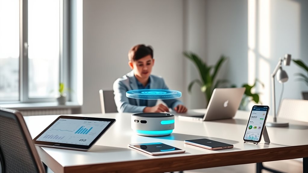 AI companions boost your daily productivity by helping you manage schedules, set reminders, and organize emails automatically. They learn your routines and anticipate your needs, making proactive suggestions when needed. These tools can analyze your workload, prioritize tasks, and even draft or respond to messages, saving you time. They also support skill development, motivation, and wellbeing with personalized prompts. Stay tuned to discover how you can leverage these smart assistants to transform your personal and professional life.