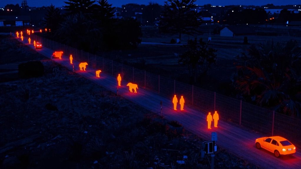 Thermal cameras can detect small or slow-moving objects, but detection limitations depend on their motion sensitivity settings. If your camera has high motion sensitivity, it’s better at catching slow or tiny movements. However, if sensitivity is too low, these objects might go unnoticed. You should adjust the settings based on your perimeter needs, ensuring the thermal security camera efficiently detects even the smallest or slowest movements without false alarms.