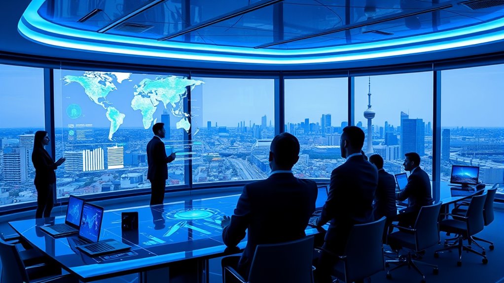 You’ll see international AI regulations coordinate through global agreements and organizations, like the UN or WTO, promoting shared standards and best practices. Countries will collaborate on policy frameworks, ensuring consistency across borders. By participating in treaties and joint initiatives, you can help shape unified approaches, reducing fragmentation and fostering trust. This coordination aims to balance innovation with safety, ensuring AI benefits everyone while minimizing risks worldwide.