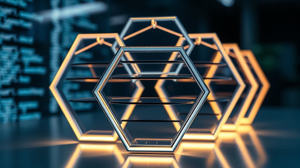 Hexagonal architecture helps you decouple your business logic from external systems by defining clear interfaces (ports) that act as contracts for interactions. You implement adapters to connect these ports to databases, web interfaces, or other external services. This approach makes your core application more flexible, testable, and easier to modify, since changes in external dependencies won’t affect your business rules. Exploring this further will reveal how it enhances system maintainability and design.