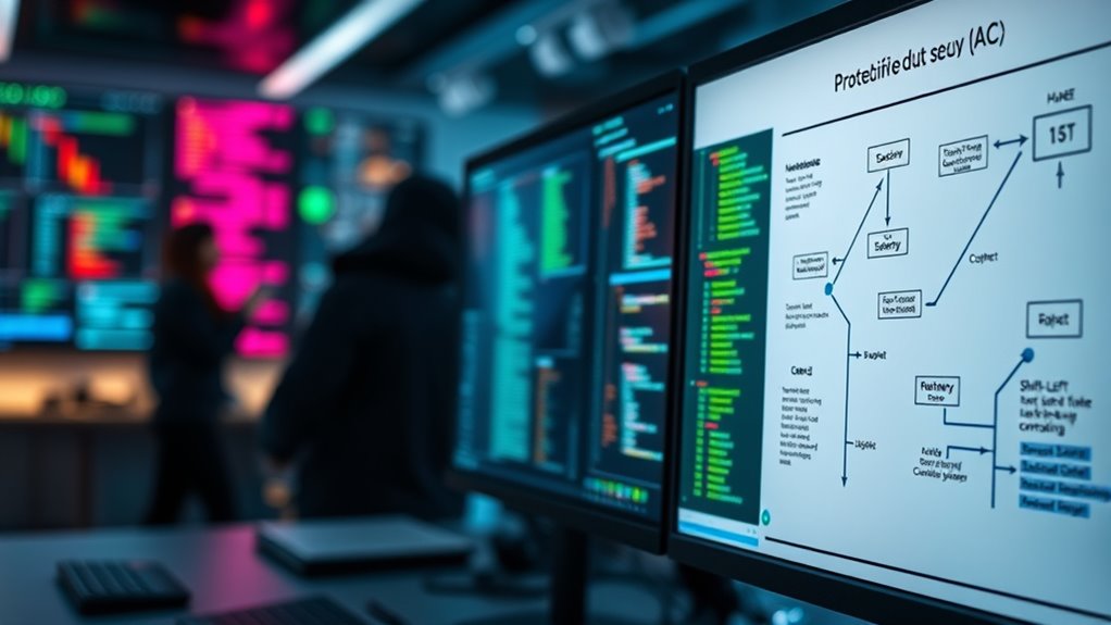 To secure your Infrastructure as Code before it hits production, you should adopt shift-left security practices. Embed security measures early by automating compliance checks, continuously evaluating IaC against policies, and providing instant feedback to developers. Invest in developer training to foster a security-first mindset, and combine automated tools with ongoing education to create a seamless security ecosystem. This proactive approach helps you catch vulnerabilities early, reducing risks and ensuring compliance—discover more ways to strengthen your cloud security now.
