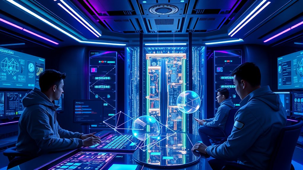 Quantum error correction considerably impacts your DevOps practices by requiring you to integrate specialized tools and workflows that detect and fix quantum errors in real-time. You’ll need to implement continuous testing, automate error mitigation, and monitor qubit stability closely. This means adapting your CI/CD pipelines to accommodate quantum-specific processes and ensuring rapid feedback loops. Embracing these changes helps maintain the reliability and performance of quantum applications throughout development and deployment.