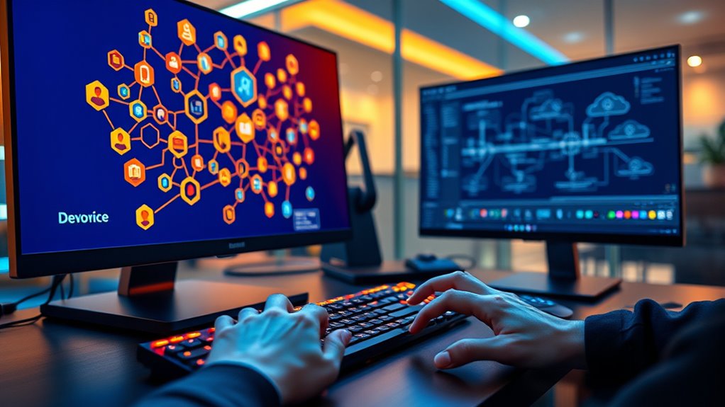 Microservices architecture and DevOps work together to make your software delivery faster, more reliable, and scalable. By breaking applications into independent components, you can update features without risking the whole system. Automating development, testing, and deployment reduces manual effort and shortens release cycles. This synergy also improves collaboration, security, and monitoring, helping you respond quickly to market changes. If you want to explore how this powerful combination can transform your projects, there’s more to discover ahead.